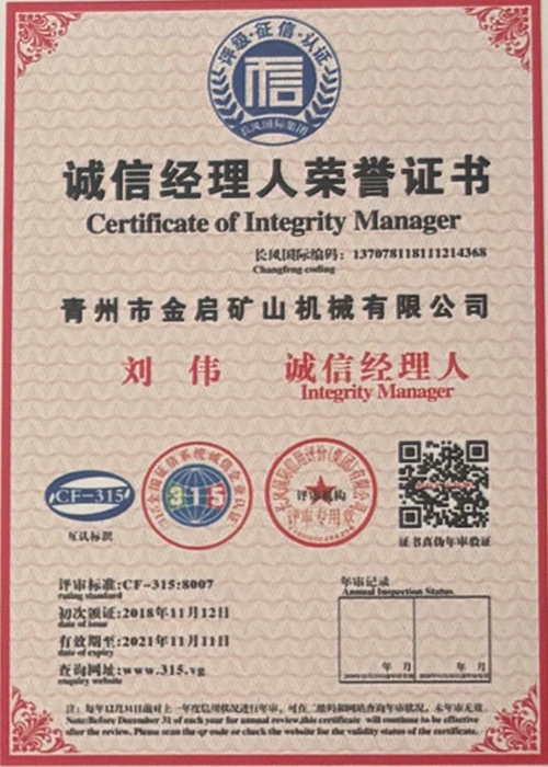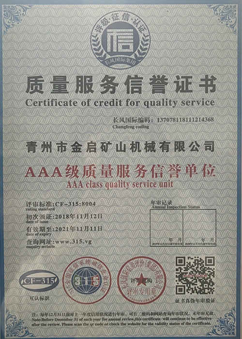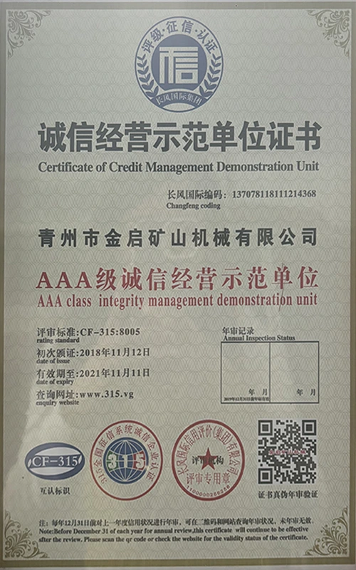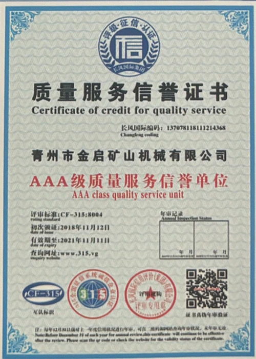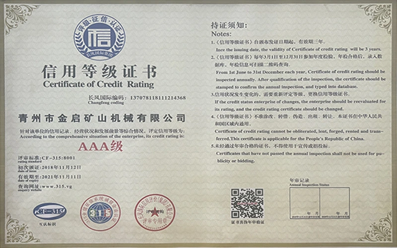 صنعت ۾ سالن جي کوٽائي جي تجربي سان، سخت معيار جي ڪنٽرول ۽ مسلسل ٽيڪنالاجي جدت تي ڀروسو ڪندي، ڪمپني ڪيترن ئي مستند قابليت، سرٽيفڪيشن ۽ پيٽنٽ سرٽيفڪيٽ حاصل ڪيا آهن، جن ۾ ISO معيار مينيجمينٽ سسٽم سرٽيفڪيشن، مائننگ پراڊڪٽ جي حفاظت جي سرٽيفڪيشن، گڏوگڏ ڪيترن ئي ايجاد پيٽنٽس ۽ يوٽيلٽي ڍانچي لاءِ اپ-پيٽنٽ ٽيڪنالاجي ۽ يوٽيلٽي ڍانچي جي اپ گريڊيشن ٽيڪنالاجي. گہرے فني طاقت جو مظاهرو ۽ مطابق پيداوار جي ضمانت.