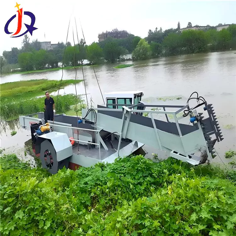 روٽري ڪٽڻ واري ڊسڪ يا ڪريلر قسم جي بليڊن سان ليس، ڪٽڻ جي کوٽائي ترتيب ڏئي سگهجي ٿي (0.5-2 ميٽر)، مختلف آبي ٻوٽن جهڙوڪ واٽر هائيڪينٿ ۽ ڊڪ ويڊ جي فصل جي ضرورتن کي پورو ڪندي. هڪ تيز پريشر واٽر پمپ يا اسڪرو ڪنويئر نصب ڪيو ويو آهي ته جيئن ڪٽ ٻوٽن جي تيزيءَ سان گڏ ٿيڻ ۽ پهچائڻ، ثانوي آلودگي کان بچڻ لاءِ.